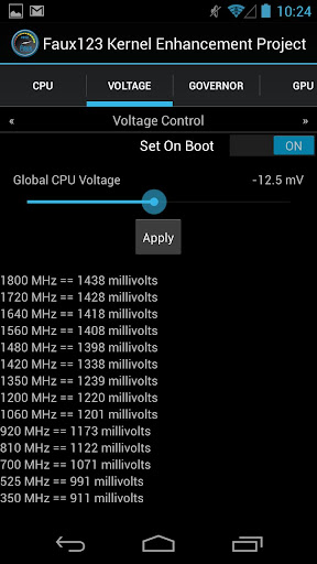 (supports ondemand, conservative, interactive, intellidemand, and pegasusq governors. More to come later!)Allows for CPU governor specific tweaks