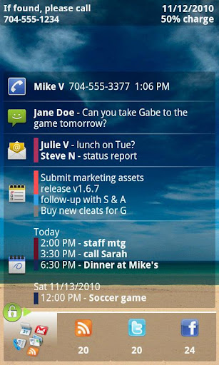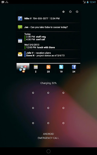 - Lock Screen: Use as a lock screen replacement to preview all of your stuff without going thru the hassle of unlocking the phone. You choose which info is safe to show on the lock screen.