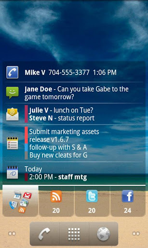 - Home Screen Widget: 'always on' interface wherever you want it. Use a full-widget that includes a preview area, or a single-row, icons-only widget that simply shows the app icons with counts. Many sizes to choose from. Optionally use a Sense-like or Glass theme for the full-widget.