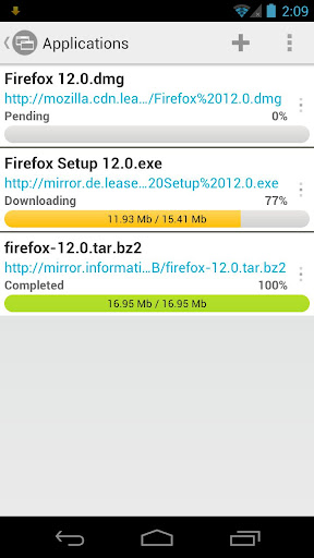 Loader Droid download manager can solves many problems with the standard Android Browser, which is sometimes unable to load files (including e-books, video streams, audio, applictions, zip files, etc.)