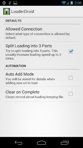 For most servers Loader Droid download manager apk will load in 3 threads: sometimes this increases loading speed up to 3 times.