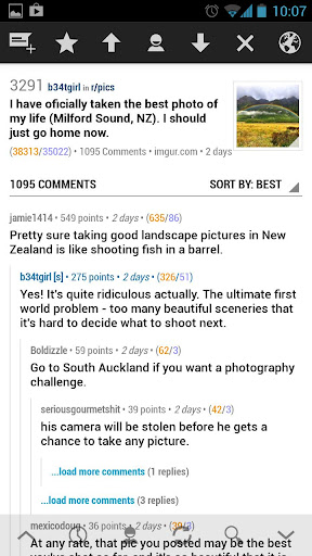 - Stories and comments load at the same time. Switch between the two by sliding up and down the voting bar. (see market pic)