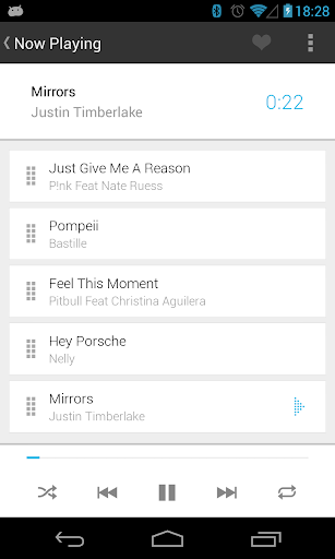 - Tap the bottom bar to goto the Now Playing screen from anywhere in the app. Swipe the bottom bar audio controls to expose shuffle and repeat options.